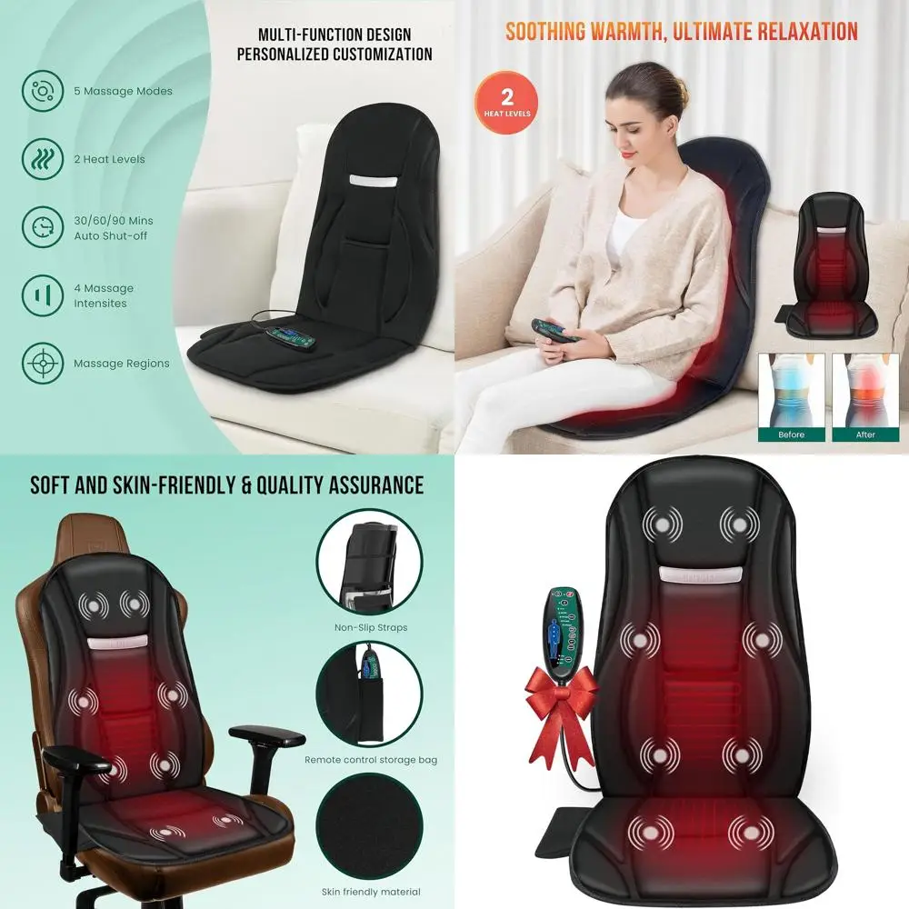 Heated Vibration Seat Massager with 8 Motors and 5 Modes, Cushion for Chair, Perfect Office Gift